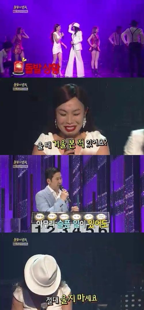 이날 가수 바다의 '애상' 무대에는 개그우먼 오나미가 뒤태미녀로 등장하기로 돼 있었지만 오나미는 타이밍을 맞추지 못해 바다의 무대에 오점을 남겼고 이후 돌이킬 수 없는 상황에서 미안한 마음에 눈물을 펑펑 쏟고 말았다.