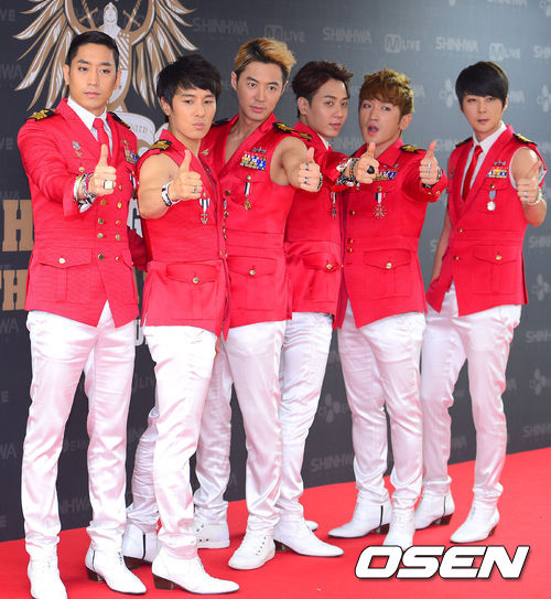 4일 오후 서울 올림픽공원 체조경기장에서 열린 '2013 신화 그랜드 피날레 더 클래식 인 서울'(2013 SHINHWA GRAND FINALE 'THE CLASSIC' IN SEOUL)의 공식기자회견에서 그룹 신화가 포즈를 취하고 있다