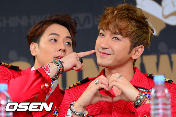 4일 오후 서울 올림픽공원 체조경기장에서 열린 '2013 신화 그랜드 피날레 더 클래식 인 서울'(2013 SHINHWA GRAND FINALE 'THE CLASSIC' IN SEOUL)의 공식기자회견에서 신화 이민우가 장난스러운 포즈를 취하고 있다