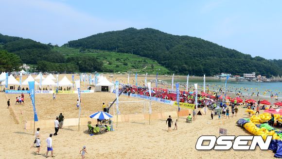 피서객들이 해수욕장을 찾아 비치사커와 함께 휴가를 즐기고 있다.