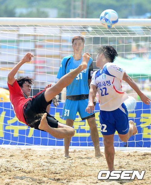 '2013 하이트진로 전국 비치사커(Beach Soccer) 대회' 결승전이 4일 오후 경남 남해군 상주 은모래비치 내 특설경기장에서 열렸다.