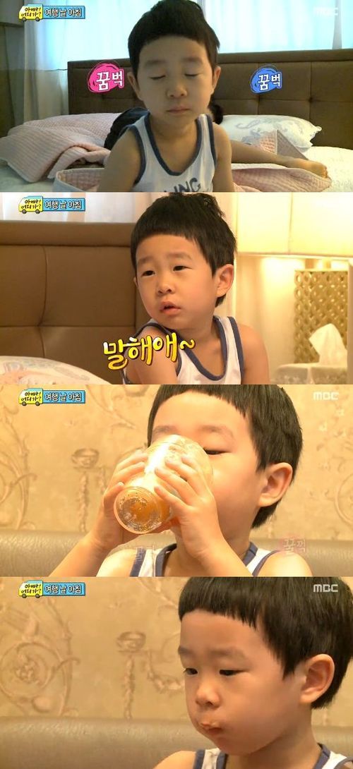 방송인 김성주의 둘째 아들 민율이 아빠와 형 민국의 여행을 따라가기 위해 맛 없는 건강주스까지 마셨다.