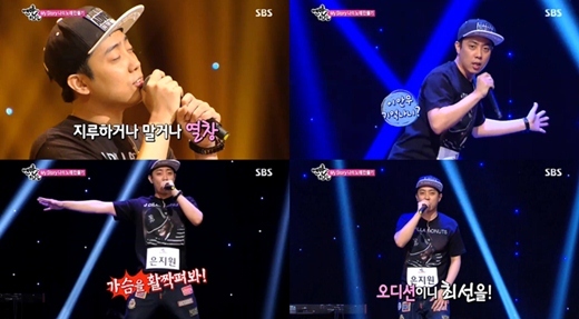 이날 은지원은 오디션에 첫 번째 참가자로 참여, 당황한 마음을 담은 '울고 싶어라'를 열창했다. 하지만 심사위원인 에픽하이와 다이나믹 듀오, 이단옆차기는 은지원의 노래를 중간에 끊으며 다른 특기를 보여 달라고 했고, 이에 은지원은 1997년 활동했던 젝스키스의 '폼생폼사'를 불렀다.