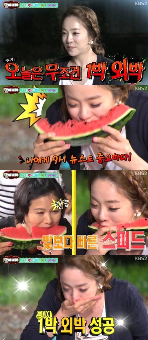 이에 박은영은 아나운서의 이미지를 모두 버리고 수박 먹기에 열중했다. 박은영은 외박권을 위해 거침없이 수박을 먹어치워 모두를 깜짝 놀라게 했다.