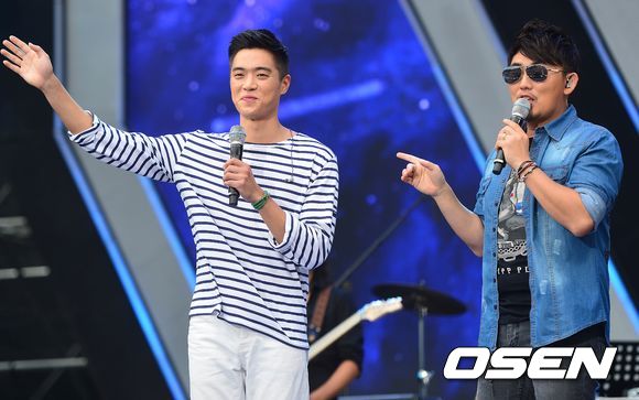 가수 이승철과 김정환이 4일 오후 서울 시청 앞 잔디광장에서 열린 '슈퍼스타K5 올스타 콘서트'에 참가해 인사를 나누고 있다.