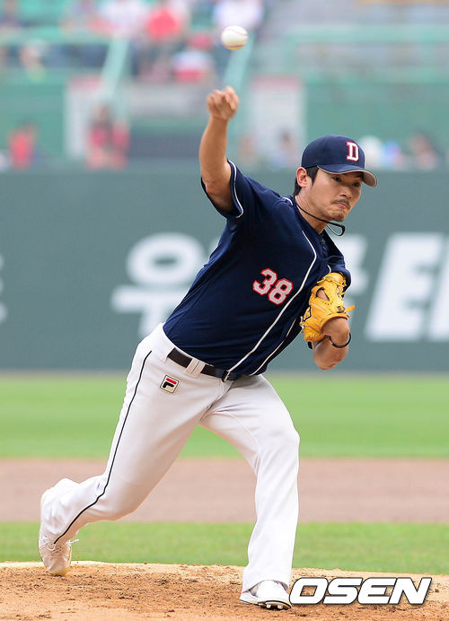 4일 오후 인천 문학구장에서 열린 '2013 한국야쿠르트 세븐 프로야구' SK 와이번스와 두산 베어스의 경기 두산 선발 노경은이 역투하고 있다.