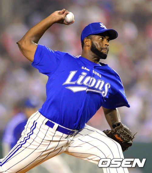 4일 오후 서울 잠실구장에서 열린 2013 한국야쿠르트 세븐 프로야구 LG 트윈스와 삼성 라이온즈의 경기,6회말 삼성 카리대가 역투하고 있다
