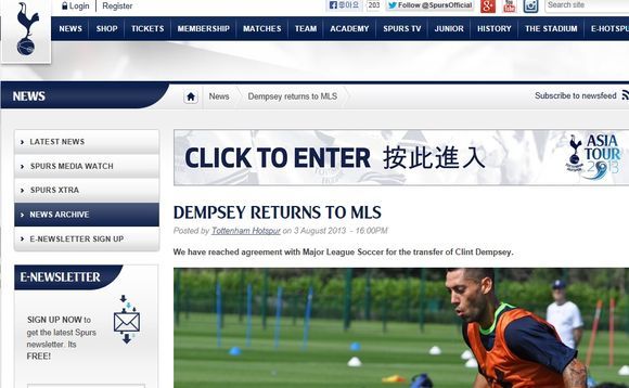 토트넘은 3일(이하 한국시간) 공식 홈페이지를 통해 "뎀프시가 MLS로 돌아간다"면서 "시애틀 선더스와 이적료에 합의했다"고 전했다.