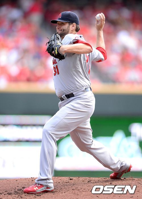 5일(이하 한국시간) 미국 오하이오주 신시내티에 위치한 그레이트 아메리칸 볼파크에서 열린 2013 메이저리그 신시내티 레즈와 세인트루이스 카디널스의 경기, 1회말 무사에서 세인트루이스 선발투수 랜스 린이 힘차게 공을 던지고 있다.
