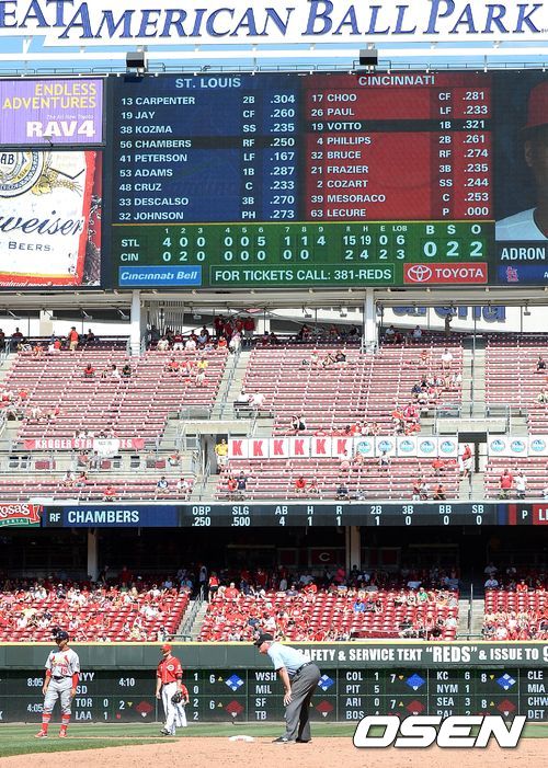 신시내티는 5일(한국시간) 미국 오하이오주 신시내티 그레이트 아메리칸 볼파크에서 열린 세인트루이스와 경기서 2-15로 완패, 홈 3연전 1승 2패로 루징시리즈를 기록했다.