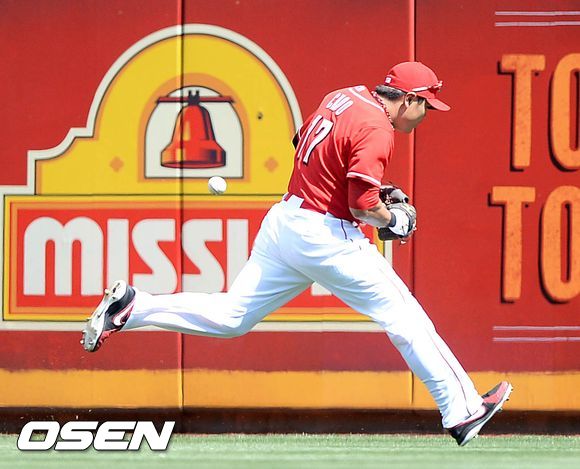 9회초 1사에서 신시내티 추신수가 세인트루이스 데스칼소의 타구를 놓치고 있다./sunday@osen.co.kr
