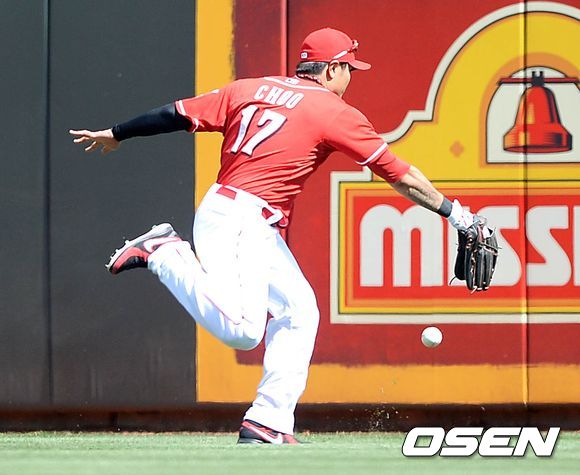 9회초 1사에서 신시내티 추신수가 세인트루이스 데스칼소의 타구를 놓치고 있다./sunday@osen.co.kr