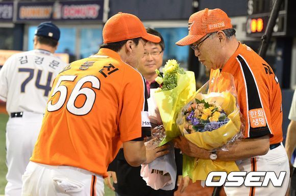 이날 경기는 한화가 4-2로 리드한 7회말이 끝난 뒤 폭우가 쏟아져 중지됐다. 25분간 중지된 뒤 경기가 재개됐다. 30분간 비가 오면 강우콜드가 된다. 김 감독은 "딱 5분 남기고 비가 그치더라"고 했다. 그만큼 승리가 간절했다. 하지만 김 감독은 "그래도 9회까지 다해서 그림은 좋았다"고 너털웃음을 지었다.