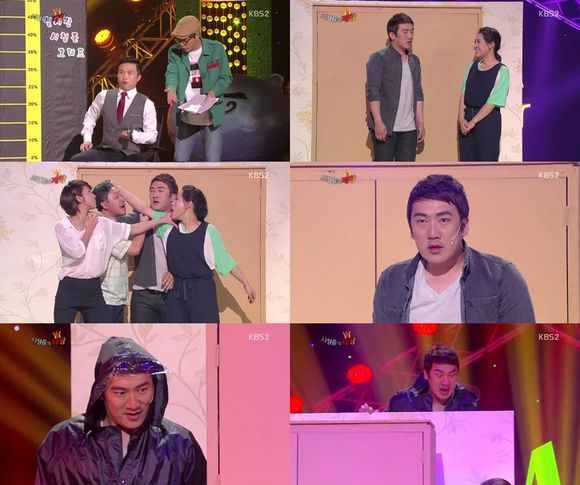 [OSEN=방송연예팀] 시청률의 제왕 너목들 패러디에 시청자들이 뒤로 자빠졌다. KBS 2TV '개그콘서트' 속 '시청률의 재왕' 코너에서다. 정통 코미디 프로의 제왕 '개콘'답게 경쟁사인 SBS의 종영한 인기 수목드라마 '너목들' 패러디로 큰 웃음을 선사했다.