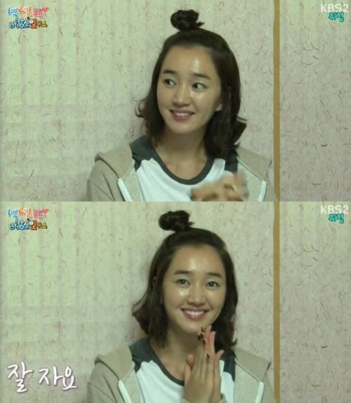 수애는 지난 4일 방송된 KBS 2TV 예능 프로그램 '해피선데이-1박2일'(이하 '1박2일')에서 깜찍한 사과머리를 선보였다.