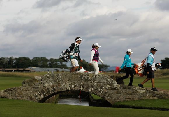 박인비가 3라운드 스윌컨브리지를 건너 18번홀 그린으로 이동하고있다