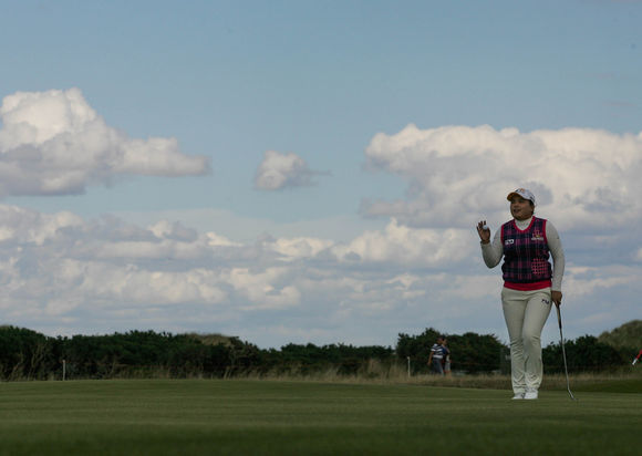 박인비가 마지막 라운드 14번홀에서 버디를 성공시킨 후 인사를 하고 있다.