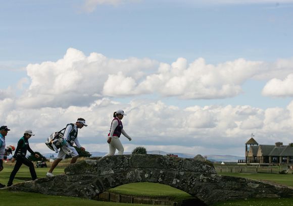 박인비가 마지막날 경기를 마치고 다리를 건너고 있다.