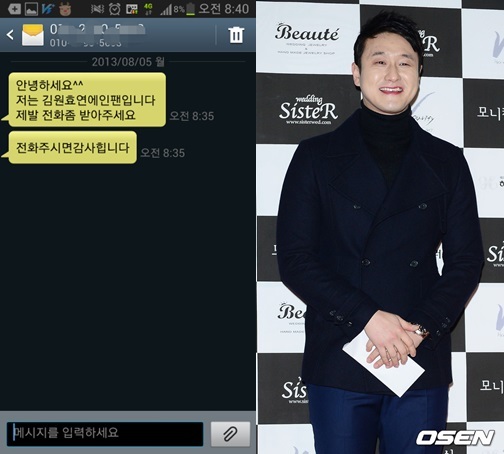 이와 함께 공개된 사진에는 오전 8시 35분, 자신을 팬이라고 밝히며 전화를 받아달라는 내용이 적힌 두 통의 메시지가 담겨있다.