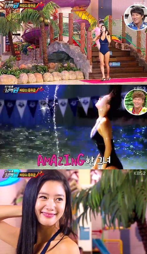 이에 스튜디오에서는 김종국과 차태현, 김준현 등 남자 출연자의 수영복 사진이 공개돼 웃음을 자아내기도 했다.