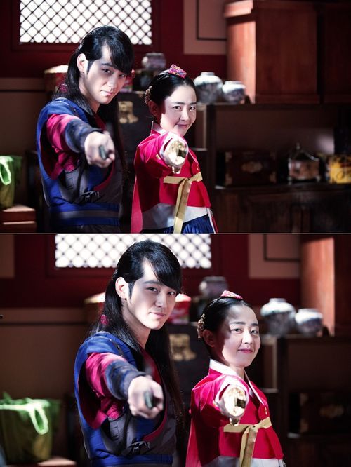 사진 속 정이와 태도는 소품용 칼을 들고 똑같은 포즈를 취한 채 카메라를 향해 강렬한 눈빛을 보내고 있다. 각각 드라마 속 정이와 태도로 분한 채 의기양양한 표정을 짓고 있는 두 사람의 장난스러운 모습이 웃음을 자아낸다.