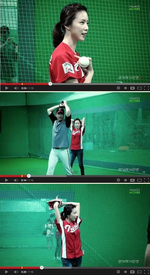 홍은희가 허 위원으로부터 칭찬을 받은 데는 그럴 만한 이유가 있었다. 홍은희의 소속사인 나무엑터스가 5일 유튜브에 공개한 비하인드 영상에 의하면 경기 시작 1시간 전에 잠실구장에 도착해 LG 투수 봉중근으로부터 집중 훈련을 받았다.