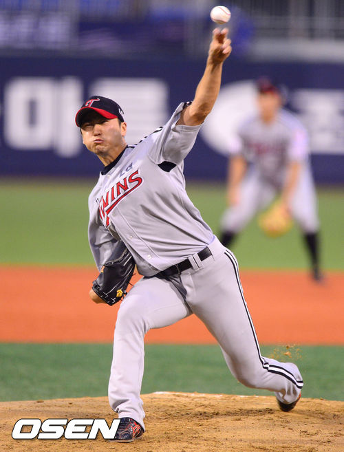 6일 오후 경남 창원 마산구장에서 열린 '2013 한국야쿠르트 세븐 프로야구' NC 다이노스와 LG 트윈스의 경기,1회말 LG 선발투수 신재웅이 역투하고 있다