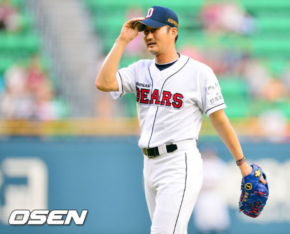 6일 오후 잠실 야구장에서 열린 2013 한국야쿠르트 세븐프로야구 두산 베어스와 넥센 히어로즈의 경기, 1회초를 마무리한 두산 선발 이재우가 덕아웃으로 향하고 있다.