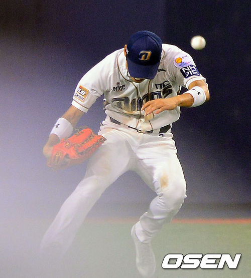 6일 오후 경남 창원 마산구장에서 열린 '2013 한국야쿠르트 세븐 프로야구' NC 다이노스와 LG 트윈스의 경기,3회초 2사 2루 LG 이진영의 1타점 적시타때 NC 김종호 좌익수가 공을 놓치고 있다.