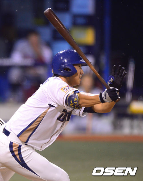 6일 오후 경남 창원 마산구장에서 열린 '2013 한국야쿠르트 세븐 프로야구' NC 다이노스와 LG 트윈스의 경기, 4회말 1사 2루 NC 나성범이 1타점 적시타를 날리고 있다.