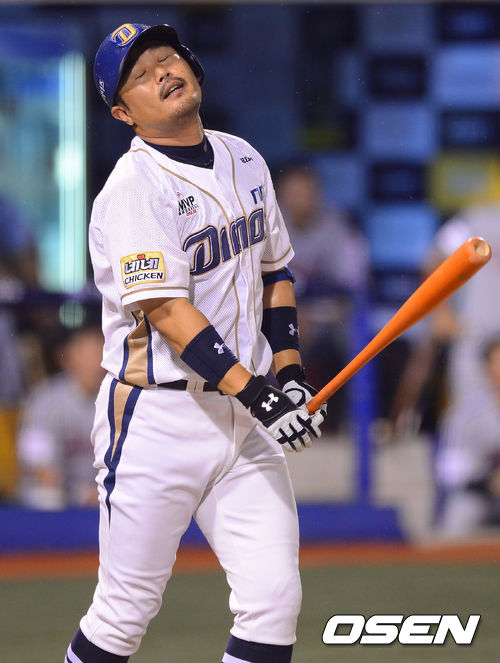 6일 오후 경남 창원 마산구장에서 열린 '2013 한국야쿠르트 세븐 프로야구' NC 다이노스와 LG 트윈스의 경기, 4회말 1사 2루 동점찬스에서 NC 이호준이 외야플라이를 날린후 아쉬워하고 있다.