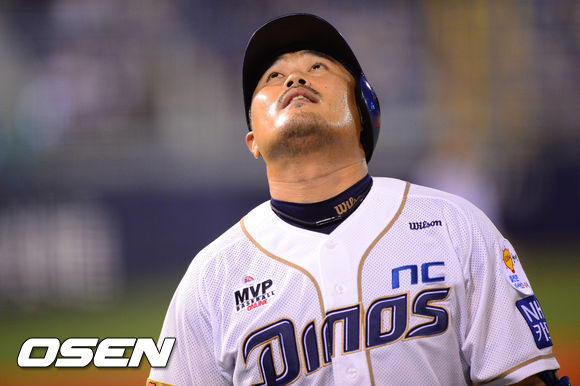 6일 오후 경남 창원 마산구장에서 열린 '2013 한국야쿠르트 세븐 프로야구' NC 다이노스와 LG 트윈스의 경기, 4회말 1사 2루 동점찬스에서 NC 이호준이 외야플라이를 날린후 아쉬워하고 있다.
