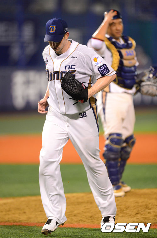 6일 오후 경남 창원 마산구장에서 열린 '2013 한국야쿠르트 세븐 프로야구' NC 다이노스와 LG 트윈스의 경기, 6회초 2사 NC 에릭 선발투수가 교체되고 있다.