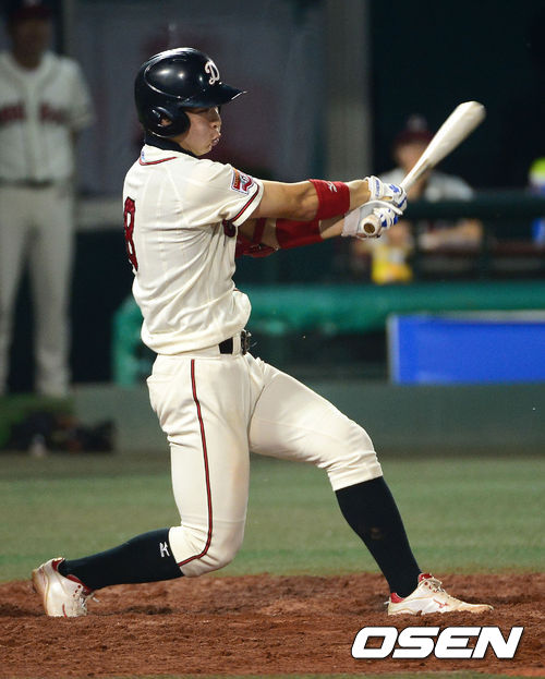 6일 오후 서울 목동구장에서 열린 '제68회 청룡기 전국 고교야구선수권대회 겸 주말리그 후반기 왕중왕전' 덕수고와 야탑고의 경기, 5회말 1사 2루 덕수고 장성훈이 1타점 적시타를 때리고 있다.