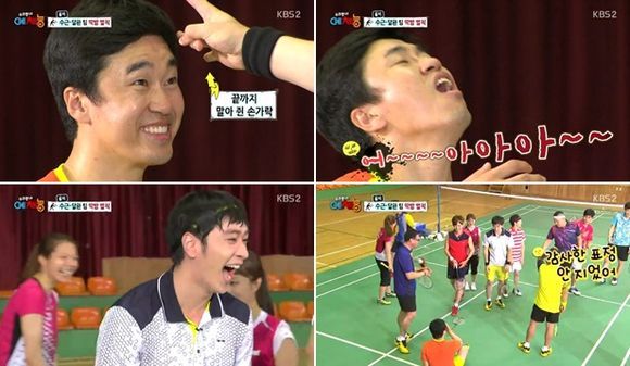 조달환은 6일 방송된 KBS 2TV '우리동네 예체능'에서 이수근과 한 팀이 돼 배드민턴 경기를 벌였으나 꼴찌를 차지, 딱밤 벌칙을 받았다. 그는 강력한 파워를 자랑하는 찬성의 딱밤에 자리에서 쓰러지며 고통을 호소했다.