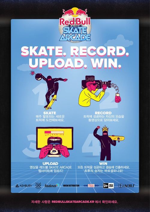 '레드불 스케이트 아케이드'는 지난 해 유럽에서 시작해 올해부터 전 세계 20개국에서 개최되는 스케이트보드 아마추어 국제대회이다. 아케이드 게임처럼 스케이드보드 미션 트릭을 제시하면, 대회 참가자는 성공한 동작을 촬영해 온라인에 올리고, 심사위원이 이를 평가하는 독특한 방식으로 예선전을 치르는 대회이다.