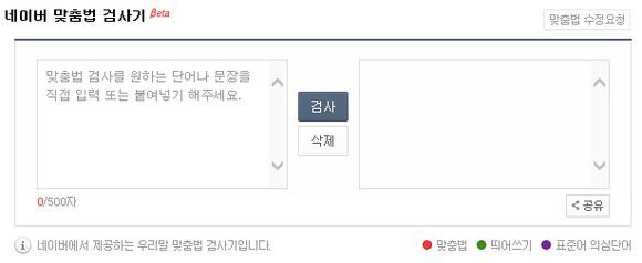 포털사이트 네이버가 서비스하고 있는 맞춤범 검사기는 애매한 단어나 어휘, 문장, 띄어쓰기가 있을 경우 입력하면 정확한 맞춤법을 알려준다.