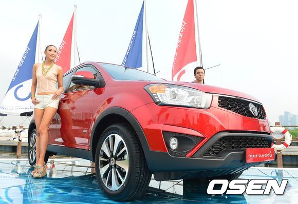 7일 오전 서울 여의도 서울마리나에서 '뉴 코란도 C' 발표회가 열렸다. 신차와 함께 모델들이 포즈를 취하고 있다.