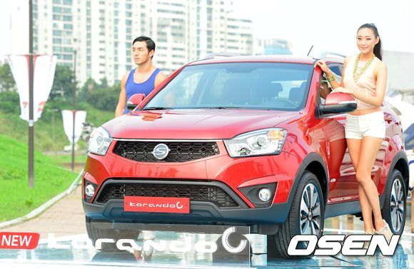 7일 오전 서울 여의도 서울마리나에서 '뉴 코란도 C' 발표회가 열렸다. 신차와 함께 모델들이 포즈를 취하고 있다.