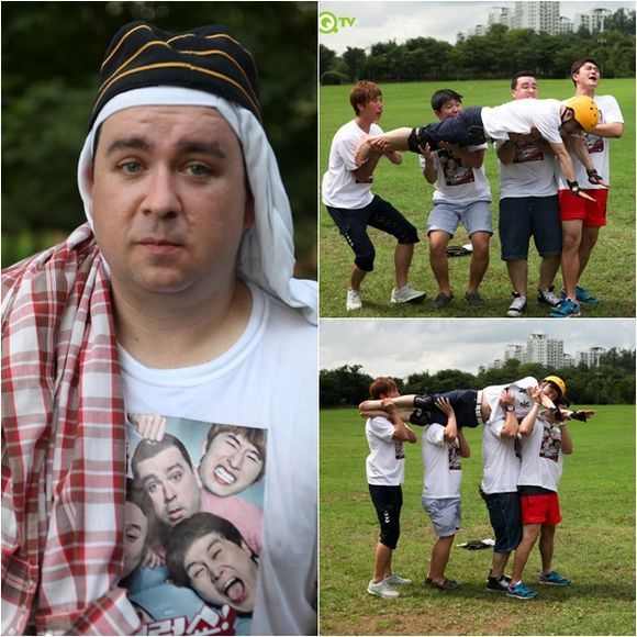 ‘어럽쇼!’의 목봉은 실제 목봉이 아닌 멤버 박성광을 드는 인간 목봉 체조로 진행됐다. 곧게 누운 박성광을 어깨 위로 들기까지 오랜 시간이 걸릴 만큼 모두가 힘들어했고, 샘 역시 얼마 지나지 않아 온 몸에 땀을 비 오듯 흘리며 유격 훈련으로 돌아간 듯한 기분을 맛보게 됐다.
