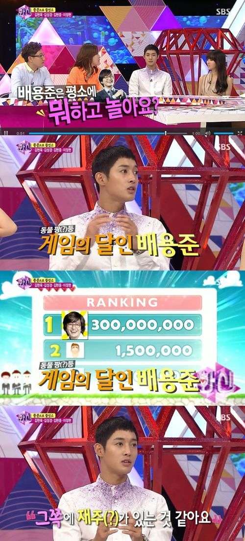 이날 게스트 김성경이 “배용준은 평소 뭘 하냐”고 묻자 MC 봉태규가 “게임 잘 한다”고 대답한 것.