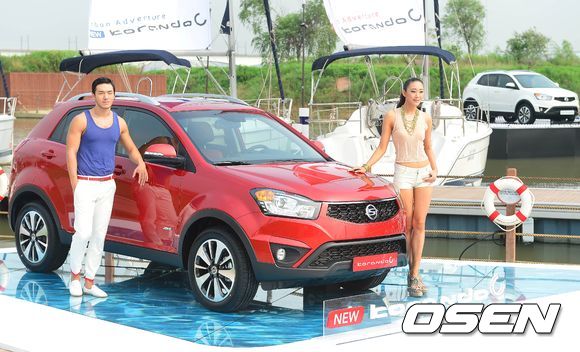 7일 오전 서울 여의도 서울마리나에서 '뉴 코란도 C' 발표회가 열렸다. 모델들이 신차와 함께 포즈를 취하고 있다.