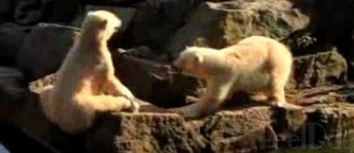 ‘북극곰 몸개그’는 거대한 몸집을 자랑하는 북극곰이 서로 힘겨루기를 하다가 벌어졌다. 한 마리의 북극곰이 힘싸움에서 밀려 바위 위에서 물로 빠진다. 그 과정에서 몸 개그를 하며 우스꽝스러운 장면을 연출했다.