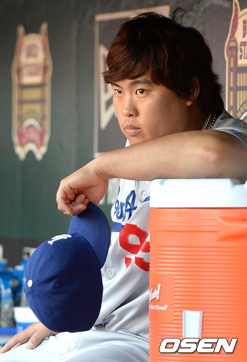 경기에 앞서 다저스 류현진이 덕아웃에서 그라운드를 바라보고 있다. /sunday@osen.co.kr