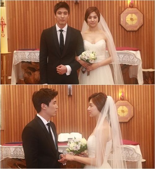 지난 4월 공개된 두 사람의 웨딩 자태가 열애설이 터진 7일 새삼 네티즌 사이에서 화제가 되고 있는 것. 당시 이들은 JTBC '가시꽃'에 등장하는 결혼식 장면을 위해 웨딩드레스와 턱시도를 입었다.