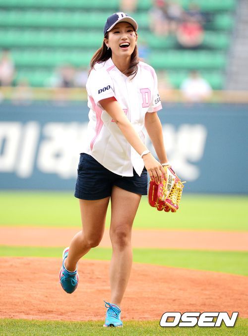 7일 오후 서울 잠실야구장에서 열린 '2013 한국야쿠르트 세븐 프로야구' 두산 베어스와 넥센 히어로즈의 경기, 경기에 앞서 프로골퍼 김다나가 시구를 하고 있다.