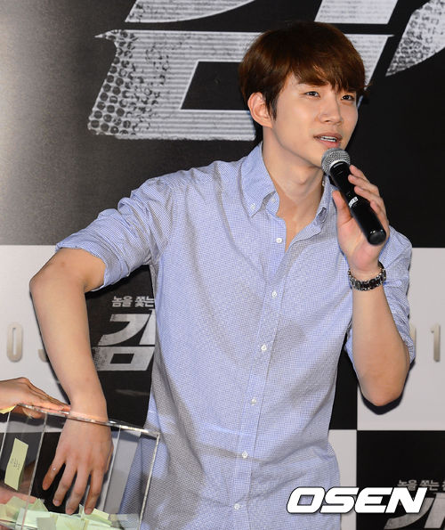 7일 오후 서울 압구정 CGV에서 진행된 영화 '감시자들(감독 조의석, 김병서) 500만 공약 실천 이벤트'에서 준호가 당첨자를 뽑고 있다.