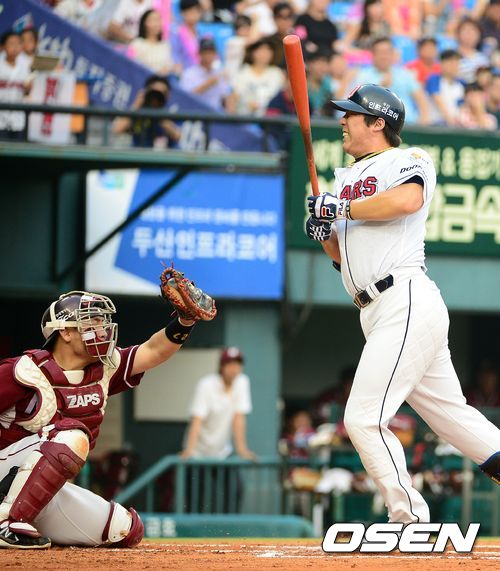 7일 오후 서울 잠실야구장에서 열린 '2013 한국야쿠르트 세븐 프로야구' 두산 베어스와 넥센 히어로즈의 경기, 1회말 무사 1,2루에서 두산 김현수가 넥센 나이트의 몸쪽 볼에 깜짝 놀라고 있다.