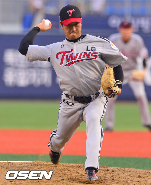 7일 오후 경남 창원 마산구장에서 열린 '2013 한국야쿠르트 세븐 프로야구' NC 다이노스와 LG 트윈스의 경기, 1회말 LG 선발투수 신정락이 역투하고 있다