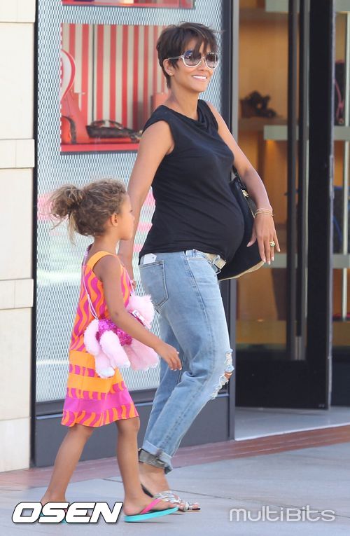 [OSEN/WENN특약] 5일(현지시간) 출산을 앞둔 할리 베리가 만삭의 모습으로 딸 날라 아리엘라 오브리와 함께 LA의 웨스트필드 센츄리 시티 쇼핑몰에 있는 식당에서 식사를 한 후 식당을 떠나고 있다. 할리 베리는 그 후 딸과 함께 공원에서 즐거은 시간을 보냈다.